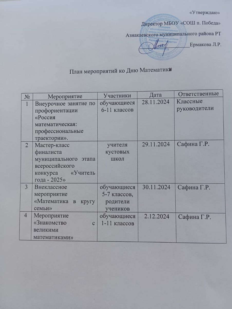 Муниципальное бюджетное общеобразовательное учреждение «Средняя общеобразовательная школа п. Победа» Азнакаевского района РТ