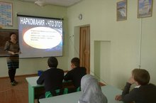 В рамках республиканского месячника "Жизнь без наркотиков" 21 октября клссный руководитель 7 класса Сафина Г.Р. провела классный час под названием " Наркомания- что это?".
