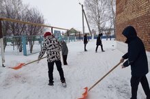 Работа с волонтерами. Помогли детскому саду почистить тропинку от ворот к садику.
