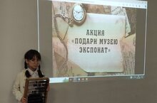 В рамках недели истории и обществознания проходит акция «Подари музею экспонат». Любой желающий может принять участие в пополнении фондовой коллекции музея предметами, отражающими историю. Это могут быть предметы военных лет, документы и старые фотографии, книги, награды и значки, военные письма, предметы одежды и аксессуары, музыкальные инструменты, изделия декоративно-прикладного искусства, предметы быта и многое другое.