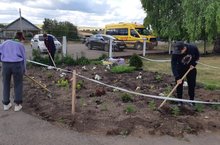 Сегодня ребята с удовольствием оказали помощь школьной библиотеке, благоустроили цветник. -