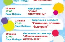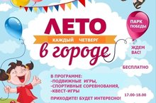 Еженедельно по четвергам в 17.00 на территории Парка Победы в течение всего лета будут проводиться игры,фестивали, соревнования, конкурсы, эстафеты, квесты. Приглашаем принять участие!