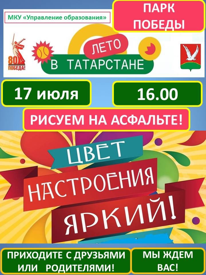 В парке Победы прошла замечательная досуговая площадка! Дети разного возраста окунулись в мир творчества, создавая яркие рисунки на асфальте. Каждый смог выразить своё видение лета яркими цветами и формами. Мероприятие прошло в рамках проекта «Лето в Татарстане», организованного для всех желающих провести тёплое время года активно и интересно.