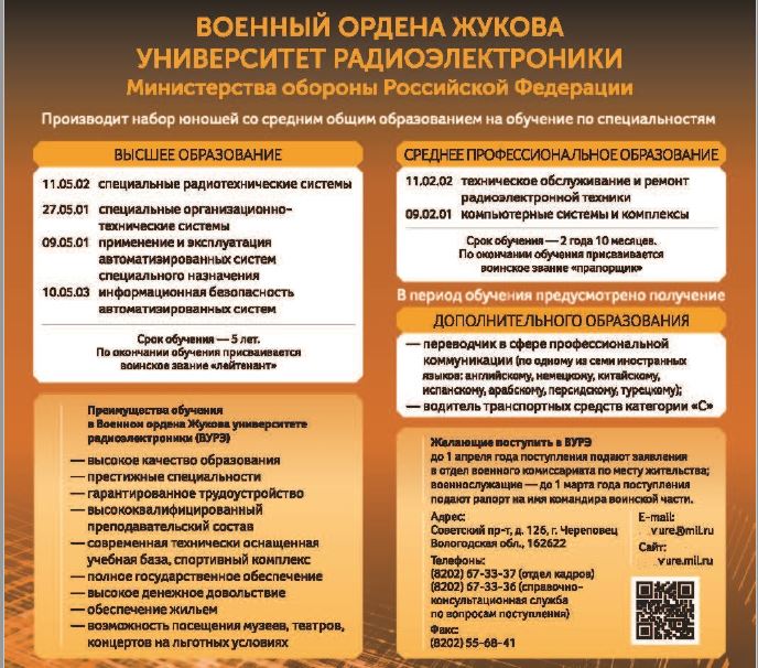Видеоролик о Военном ордена Жукова университете радиоэлектроники доступен по ссылке: https://vure.mil.ru/upload/site50/document_video/n32xYdd5iY.mp4.