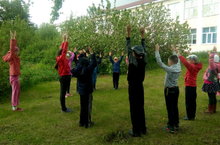 Һәркөн иртәнге гимнастика белән башланып китә.Укучылар саф һавада күнегүләр ясыйлар.