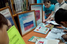 В лагере каждый день одно мероприятие.В этот раз провели выставку книг ко Дню России.