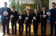 Сарлы урта мәктәбенең егетләре укытучы апаларны, ветераннарны, кызларны бәйрәм белән котладылар.