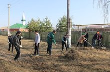 Апрель аеның кояшлы көнендә бөтен мәктәп белән экологик өмәгә чыктык. Мәктәп территориясен җыештырдык, авыл урамнарын да чүптән арындырдык.