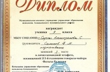 В муниципальном туре олимпиады среди учащихся 4 классов из нашей школы участвовал Ахматов Мансур. Он по русскому языку занял 4 место , а по математике -3 место. Поздравляем!( Руководитель Фаттахова З.А.)