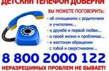 Этот единый общероссийский номер 8 800 2000 122 введен Фондом поддержки детей, находящихся в трудной жизненной ситуации, совместно с субъектами Российской Федерации. При звонке на этот номер в любом населенном пункте нашей страны со стационарных или мобильных телефонов дети, подростки и их родители, иные граждане могут получить экстренную психологическую помощь.