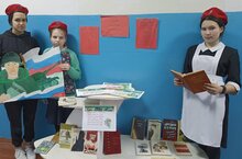 Китапханәче Гатиятова А.З. "Алар Ватан сагында" дип исемләнгән китап күргәзмәсе оештырды.Укучыларга китаптагы хикәяләр хакында сөйләде.