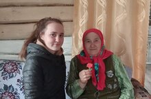 Укучылар һәр ветераннын оендә булып узләре ясаган кызыл кәнәфер бүләк иттеләр, хәлләрен белделәр.
