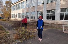 Мәктәп янын чистарту өмәсендә укучылар һәм укытучылар катнашты.