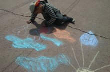 Прошел конкурс рисунков на асфальте "Мы рисуем солнце, небо и цветок".