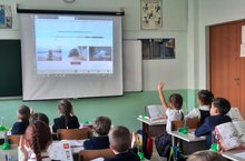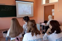20.10.22г. Отряд " Волонтеры Победы", 10Б кл. выступили в 7Б кл.с агитбригадой.