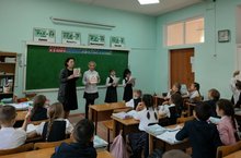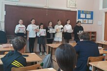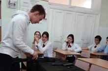 Агитбригада 9А кл.отряда Юнармии "Соколы" выступают в 8Б кл. 13.10.2022