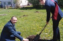 Выпускники участвовали в посадке деревьев на территории лицея.