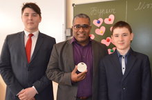 Тренеру Прокаше продемонстрировали среду обучения в нашей Школе Превосходства. Он посмотрел наши говорящие стены - выставочную экспозицию, посвящённую 70-летней годовщине Великой Победы (организована учителем истории Юсуповой Р.Р.), наш музей (руководителем музея также является учитель истории Юсупова Р.Р.), кабинет по 3D моделированию (руководитель Ахметшина Э.Ф.). Ученик 11Б класса Хасаншин Дамир сконструировал на 3D принтере памятный сувенир о нашем лицее, который Прокаш с удовольствием принял. Ученик 6Б класса Райманов Айрат показал собранный им лега-робот в действии. Мы с гордостью продемонстрировали мистеру Прокашу выставку с кубками и медалями наших спортсменов.