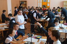 2014-2015 учебный год в Республике Татарстан объявлен Годом физики. Муниципальный этап республиканского конкурса "Учитель года" прошёл в стенах нашего физико-математического лицея. Лучшие учителя со всего Азнакаевского района провели открытые уроки и мастер-классы как с самыми младшими нашими лицеистами - с учениками 2Б класса по английскому языку и татарскому языку, с учениками 3А класса - по русскому языку, так и со старшими: учениками 6Б класса и 10А класса - по математике, 7А класса - по английскому языку, 7Б класса и 11А класса - по физике, 8Б класса и 10А класса - по химии, 10Б класса - по татарскому языку. Учителя города Азнакаево и Азнакаевсого района остались довольны знаниями и открытостью наших лицеистов.