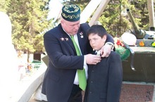 Учащийся 4А класса Файзуллин Гаяз, оператор нашей школьной радиостанции RZ4PZO занял 4 место в международных соревнованиях по радиосвязи на коротких волнах «Георгиевская ленточка», посвящённых Дню защитника Отечества. На фото наш земляк - герой России И.Дауди - лично закрепляет Фаязу медаль “Защитник Отечества” в ознаменовании Дня Победы в Великой Отечественной войне 1941-1945 гг. (Приказ №3 от 22 апреля 2012г. г. Москва). Такую же медаль "Защитник Отечества" он вручил Ибрагимову Замиру из 4А класса.Поздравляем Гаяза и Замира, их родителей и классного руководителя Разину Хасановну Алимову.