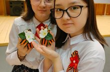 03.05.23г. Всероссийская акция, мастер класс от Культурного центра по Пушкинской карте "Георгиевская ленточка", 8А (Ихсанова И. Д.) и 8Б (Елисеева З. Р.) классы.