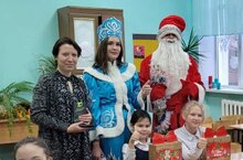 22.12.22г. Дедушка Мороз и Снегурочка вручают подарки 1-4 классам. 22.12.2022