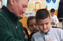 22.12.22г. Дедушка Мороз и Снегурочка вручают подарки 1-4 классам.
