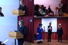 С 21-24 декабря для учеников школы прошли новогодние утренники со сказочными героями «У новогодней елки». Все ребята пришли в новогодних костюмах. В представленных сказках происходили новогодние чудеса. Добрые дела побеждали злые чары. Дети пели и плясали, выполняли задания Деда Мороза и Снегурочки и за это они получили призы. Ребята и родители получили огромный заряд весёлого настроения. Для старшеклассников вечером прошла дискотека с развлекательной программой. Дед Мороз поздравил всех с Новым Годом!