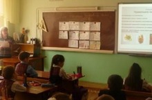 15 апреля в рамках недели начальных классов учитель 4Б класса Чернова Л.А. провела урок по предмету окружающий мир на тему: «Длинная дорога бутерброда». Представила проектную работу «Культура питания». На уроке выступили Моисеева Елена и Хамидуллин Ренат. После окончании урока провела викторину «Поле чудес», где ознакомились с историей привоза и появления овощей и фруктов в Россию. Победителем викторины стала Садриева Наргиза.