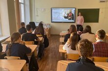 Затем прошло очередное занятие курса внеурочной деятельности Разговоры о важном по теме «Что значит служить Отечеству? 280 лет со дня рождения Ф. Ушакова».