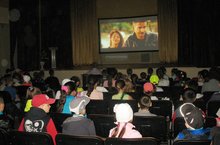 После обеда воспитанники пришкольного лагеря "Родничок" посетили новый Дворец культуры (на просмотр художественного фильма).