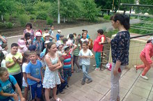 Сегодня в пришкольном лагере "Родничок" был очент насыщенный день. До обеда воспитанников пригласили на площадь Татарстана, где молодогвардейцы провели с ними разлекательное мероприятие.