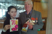 Ребята из профильного отряда "Краевед" (7А класс) поздравили участника ВОв Степанова А. Ф. с наступающим праздником - Днём Победы.Классный руководитель: Лобанова Г. Р.