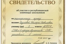 Наша ученица 8А класса Хазиева Диляра на олимпиаде республиканского этапа по татарскому языку заняла почетное 5 место.