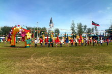 Праздник Сабантуй. Флагоносцы - обучающиеся городских школ.