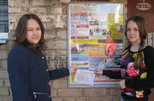 7-8 мая тимуровцы расклеивали поздравительные телеграммы с Днём Победы в микрорайоне школы.