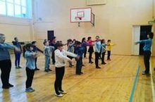 Второй день пришкольного лагеря ,,Родничок,, начался с веселой утренней зарядки