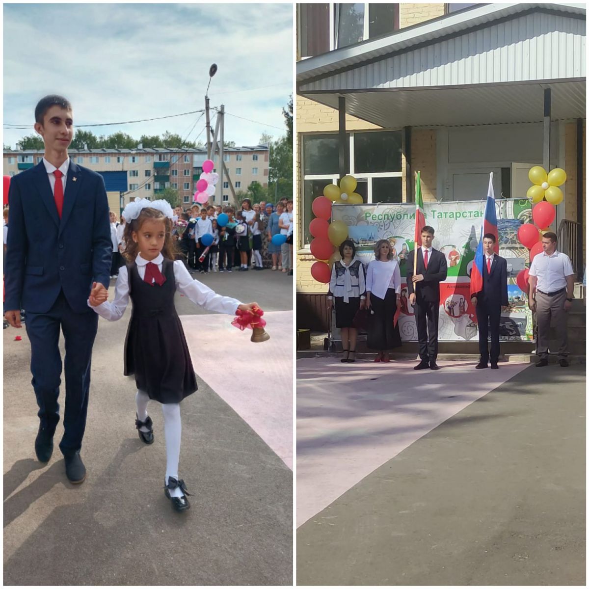 Ежегодно, 1 сентября, в России отмечается День знаний - это долгожданный звонок, волнительные моменты, море цветов, а также ставшие уже традиционными Уроки Мира. 1 сентября – это долгожданный день для всех, в первый раз переступивших порог школы. Для одних этот день – шаг в будущее, а для других – способ вернуться в школьное прошлое. И те и другие готовы вступить в совершенно новую жизнь. Потому этот день для них самый волнующий и запоминающийся. Это праздник и для тех, кто сделает очередной шаг по длинной, но такой интересной, полной открытий школьной дороге. Традиционная линейка, посвящённая Международному Дню знаний и в этом году была торжественной и красочной. Открыла праздник, по традиции, Исполняющая обязанности директора школы Сафина Р. Б. Она приветствовала учеников и их родителей праздничной речью и пожелала им успехов в предстоящем учебном году. Лучшим ученикам одиннадцатого класса было доверен вынос государственные флагов Российской Федерации и Республики Татарстан. О начале нового учебного года возвестил долгожданный школьный звонок. В этом году его подали выпускник 11 класса Фаттахов Ислам и первоклассница Исмагилова Лиана.Ел саен, 1 сентябрьдә, Россиядә Белем көне билгеләп үтелә-бу күптән көтелгән кыңгырау, дулкынландыргыч мизгелләр, чәчәкләр диңгезе, шулай ук традицион Дөнья дәресләре. Яңа уку елы башлану турында күптән көтелгән мәктәп кыңгыравы игълан ителде. Быел аны 11нче сыйныф укучысы Фәттахов Ислам һәм беренче сыйныф укучысы Исмәгыйлева Лиана тапшырды.