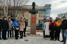 Учащиеся 8Б класса приняли участие в городском митинге ко Дню Героев Отечества и возложили цветы бюсту Героя социалистического труда Хасаншиной Г.Х. на аллее Героев