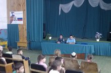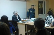 14 ноября во 2 Б классе был проведён классный час, посвящённый месячнику противопожарной безопасности. Были приглашены начальник караула ПЧ-87 «11 ОФПС по РТ» капитан внутренней службы Галявов Л.Ф. и старший инспектор отдела НД по Азнакаевскому МР ГУ УНД ГУ МЧС России по РТ капитан внутренней службы Сафиуллин А.Л. Детям было очень интересно, задавали свои вопросы.