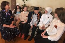 Вручение символа благотворительной акции "Красная гвоздика" и Георгиевской ленты. / "Кызыл канәфер" хәйрия акциясенең символын һәм Георгий тасмасын тапшыру. 27.04.2023