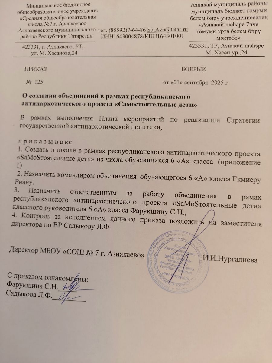 | Короткое название: | МБОУ "СОШ№7 г. Азнакаево" Азнакаевского муниципального района Республики Татарстан |