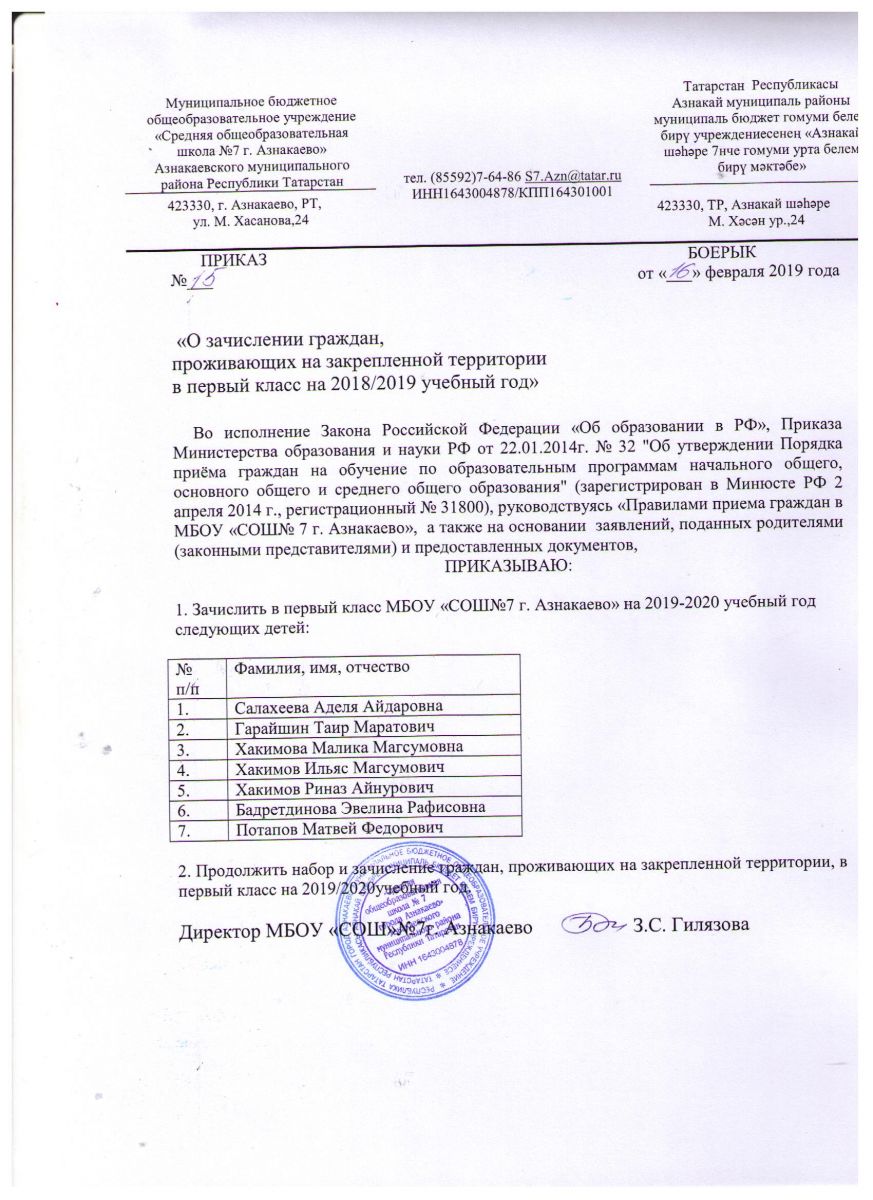Зачисление в 1 класс (ПРИКАЗЫ)