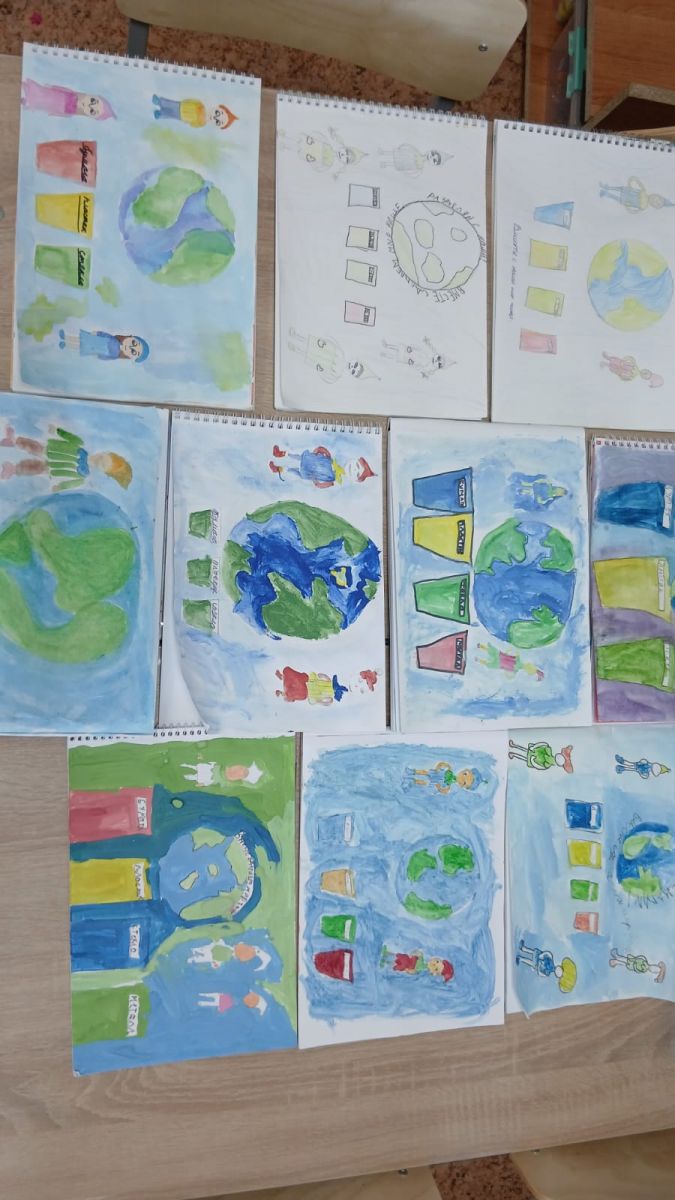 В начальных классах был проведен конкурс рисунков на тему «Эколята за раздельный сбор отходов и повторное использование материалов» -