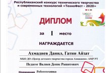 На Республиканском конкурсе технического творчества и современных технологий «ТехноФест-2020» учащиеся 4а Мухитов Р. и Фахрутдинов Р. заняли 3 место, учащиеся 6б Гатин А. и Ахмадиев Д. заняли 1 место.Поздравляем!