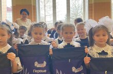 Право повязать галстуки учителям начальных классов предоставили почетным гостям и родителям! Теперь на шее у учителей красуется яркий платок-подарок от Движения Первых, а на груди у детей сияет значок "Орлята России" и символ Республики Татарстан - Барс!