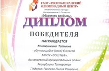2.12.17 ученица 5б класса Митюшкина приняла участие в республиканском конкурсе для школьников 1-7 классов « Эбиемнен сандыгы» и стала победителем. Учитель: Галеева