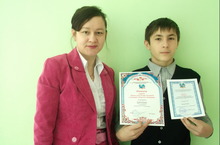 Рәсемдә: 6А сыйныф укучысы .Хаҗиев Р. Һәм1 категорияле татар теле укытучысы Хәйртдинова Г.Ә.