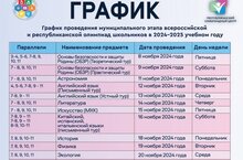 График проведения муниципального этапа всероссийской и республиканской олимпиад школьников в 2024-2025 учебном году 07.11.2024