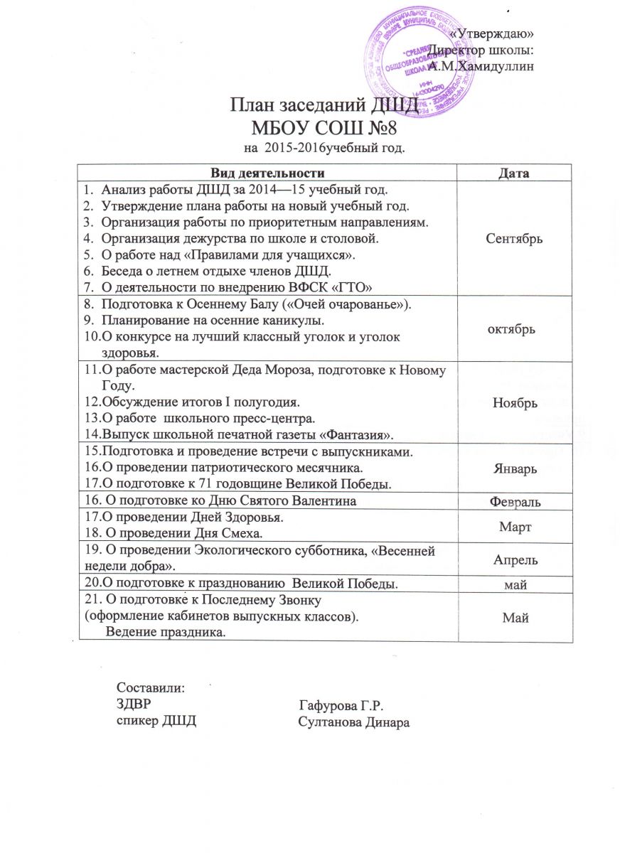 План заседаний ДШД